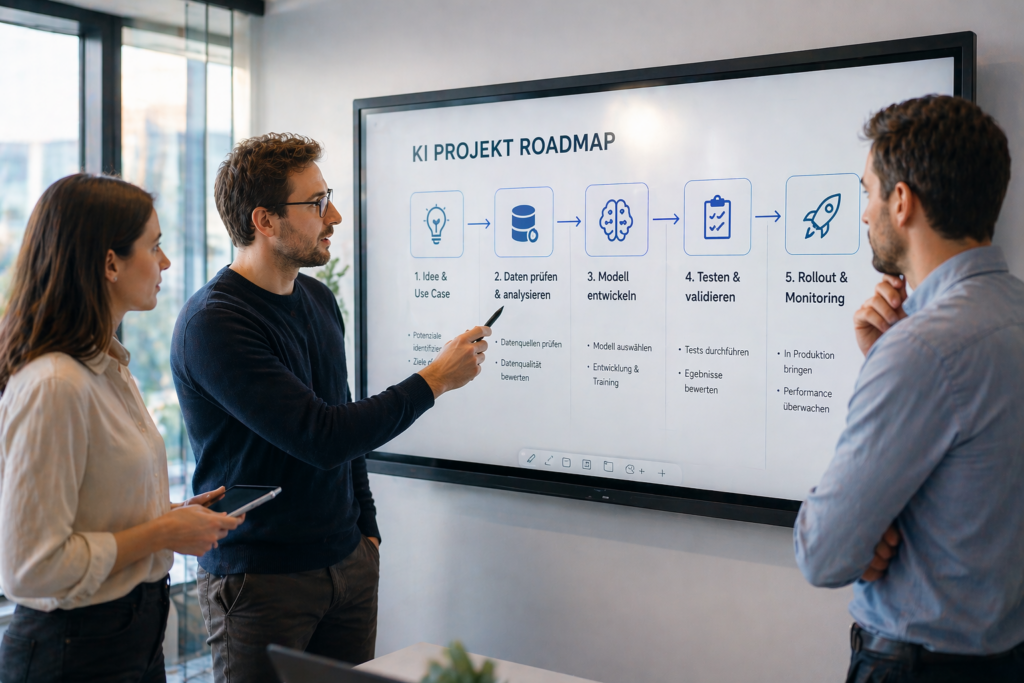 Zusätzlich muss geklärt werden, ob die benötigten Daten überhaupt verfügbar sind und genutzt werden dürfen. Datenschutz, interne Richtlinien und technische Zugänglichkeit spielen hier eine zentrale Rolle. In vielen Fällen zeigt sich an diesem Punkt, dass zunächst ein Datenprojekt notwendig ist, bevor ein KI-Projekt sinnvoll gestartet werden kann.